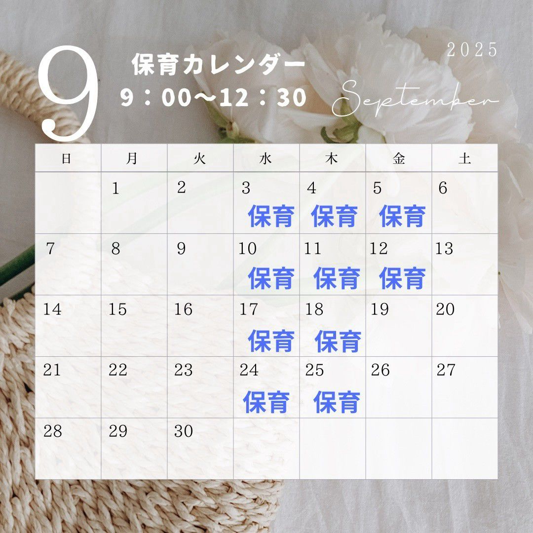 9月保育カレンダーを更新しました